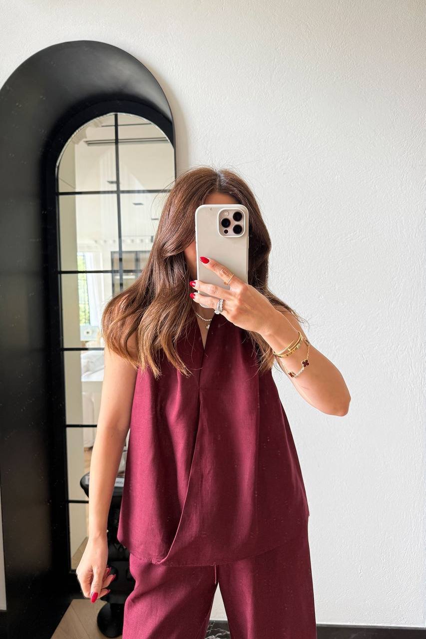 اللون النبيذي الغني يُضفي جرأة وأناقة، ويُعد خيارًا مثاليًا لأي سيدة تبحث عن قطعة تميزها وتبرز ذوقها الرفيع. نسقيه مع إكسسوارات ذهبية وحقائب صغيرة لإطلالة سهرة فخمة، أو ارتديه مع صندل بسيط لإطلالة نهارية أنيقة.